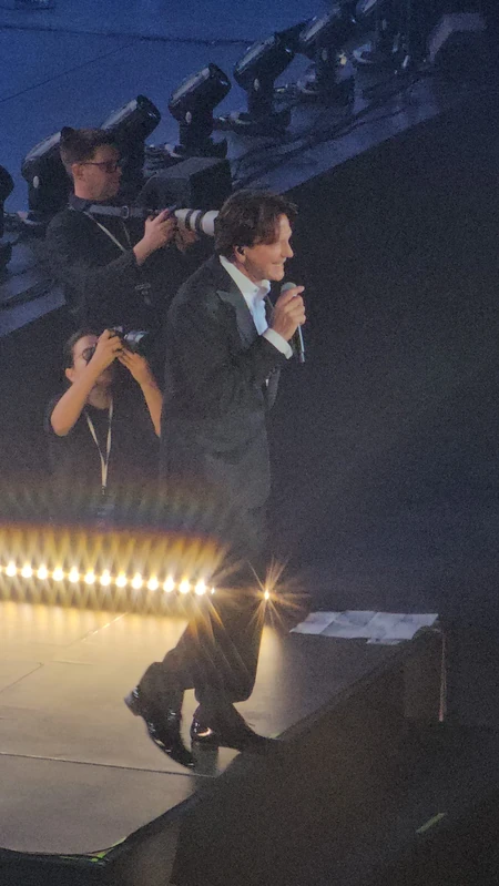 On je u jednom trenutku došao do prvog reda i zapevao Goranu Vesiću i Ivici Dačiću, a u prvom redu bila je i supruga Novaka Đokovića, Jelena koja je sve vreme sa osmehom na licu uživala u Čolinim hitovima.